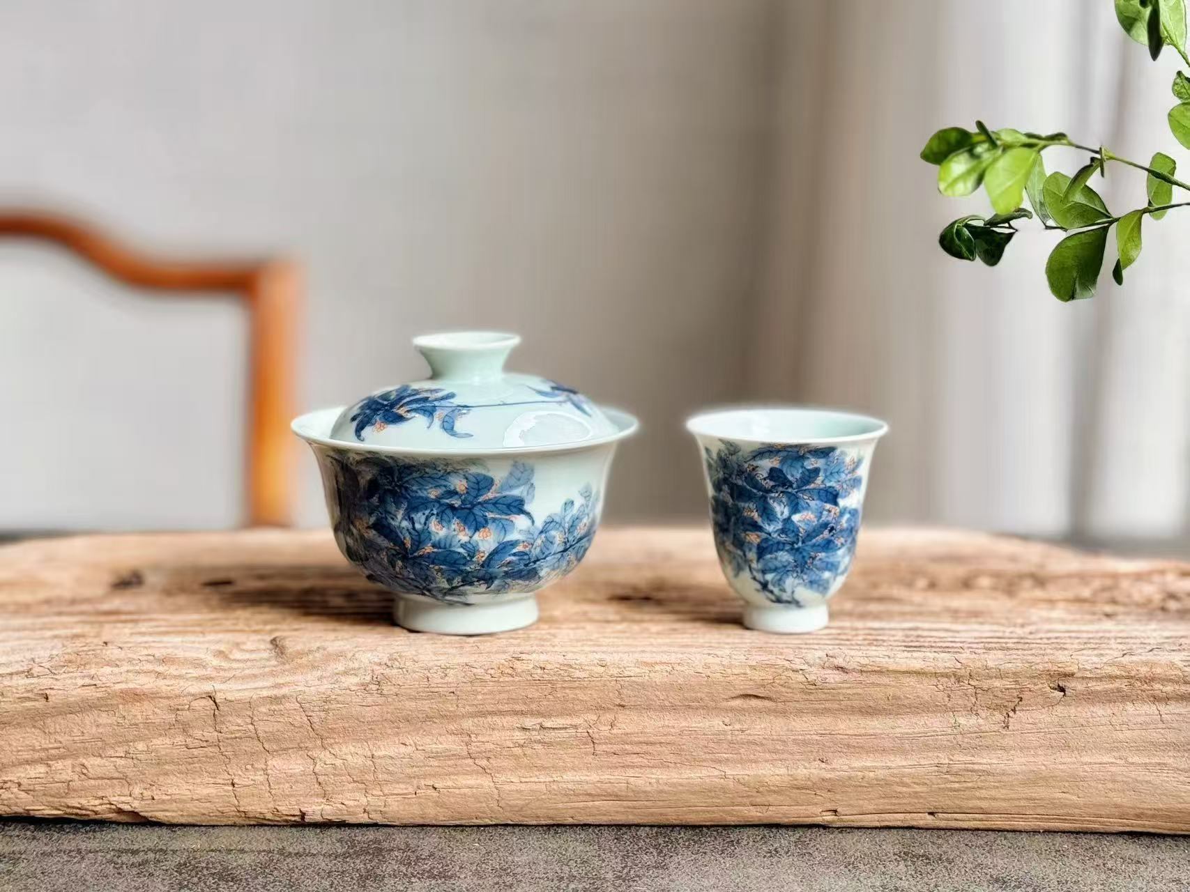基于上述考量,最终向朋友推荐的,正是符合特征、名为《金桂飘香》的青花加彩小品茗杯。